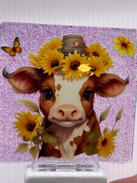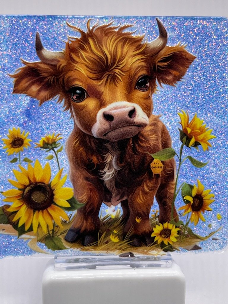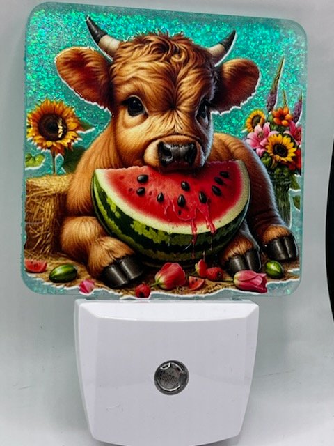 These adorable Highland Cow night lights are perfect for anywhere that needs a touch of whimsy. These lights are small with a glittery background, shine a white light and easily plug into a standard outlet. A perfect gift for the cow lover in your life!